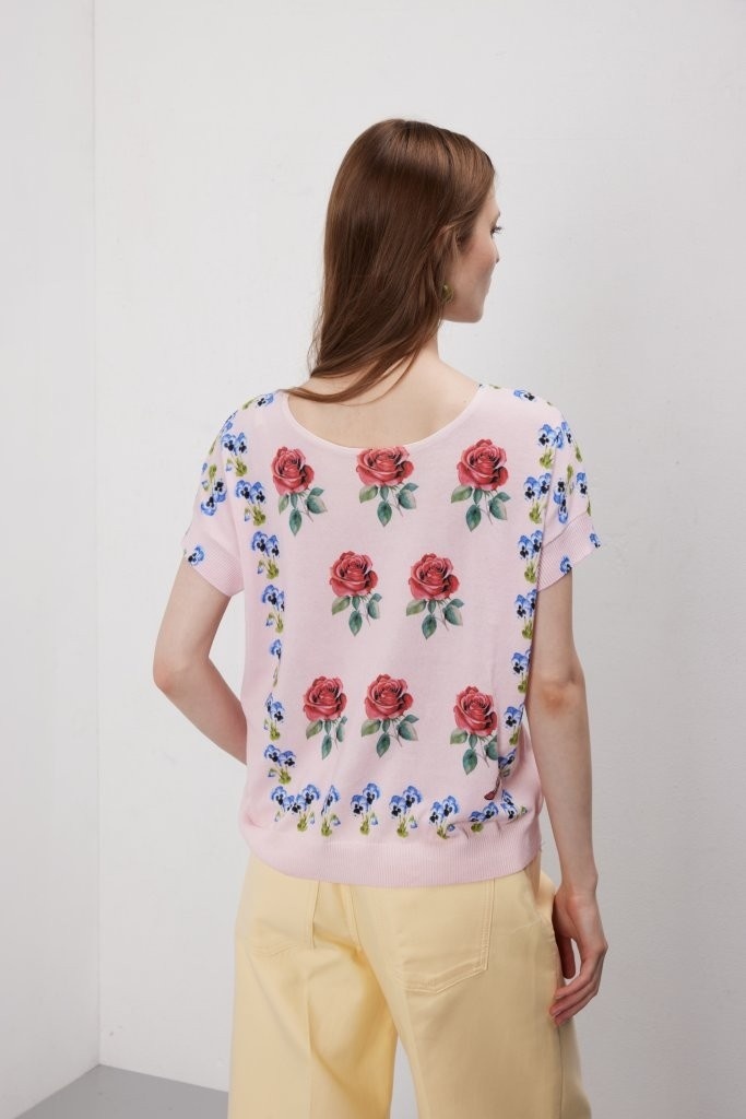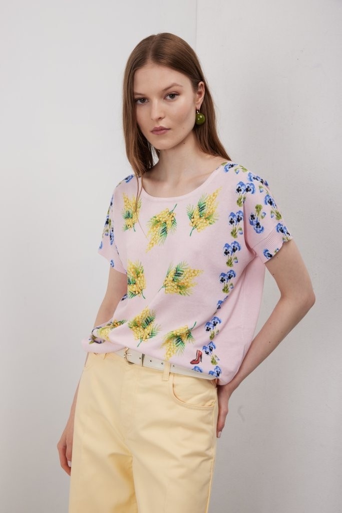 Elegant truitje met ronde hals en korte mouw.