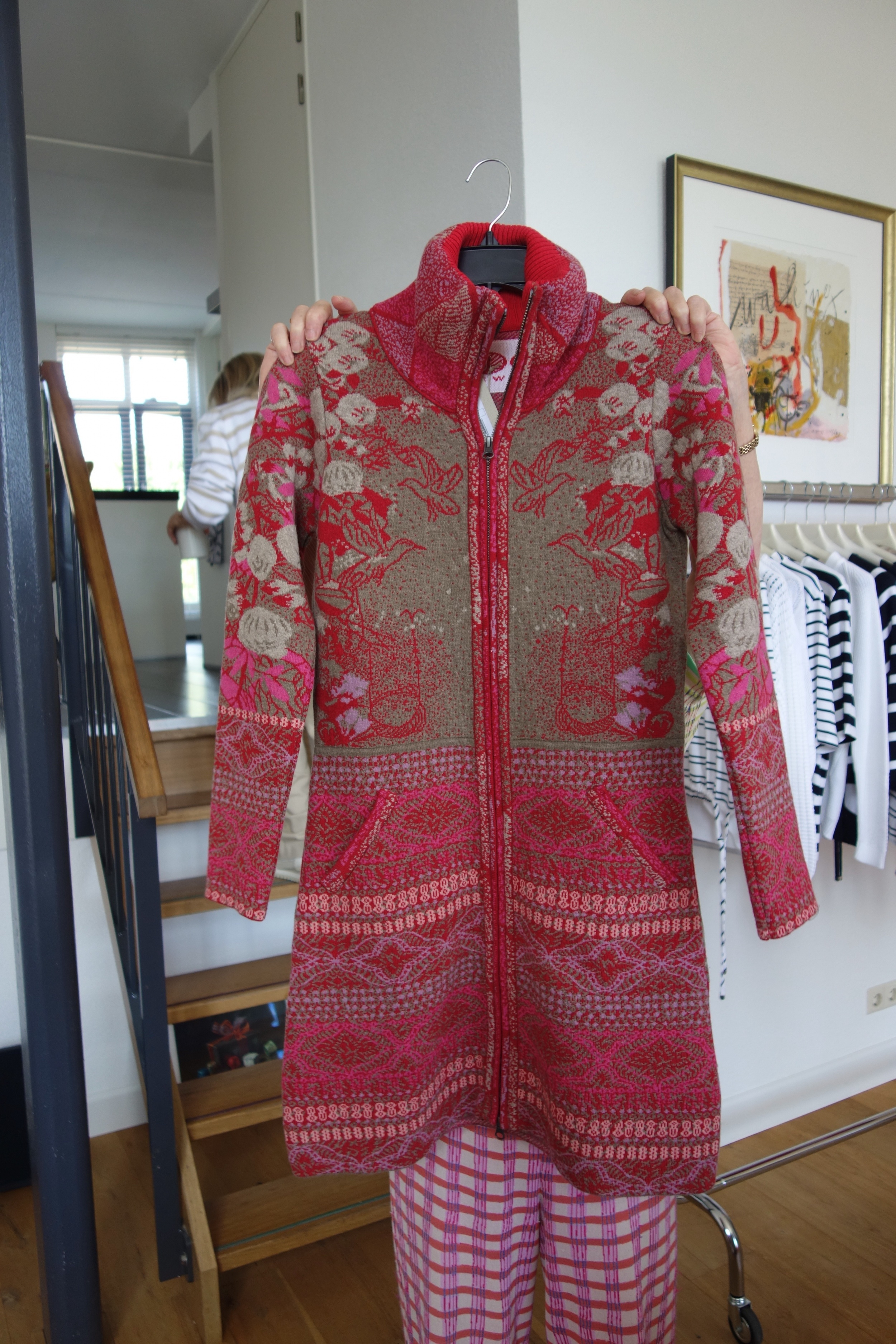 Vest jacquard lang gebreid met rits.