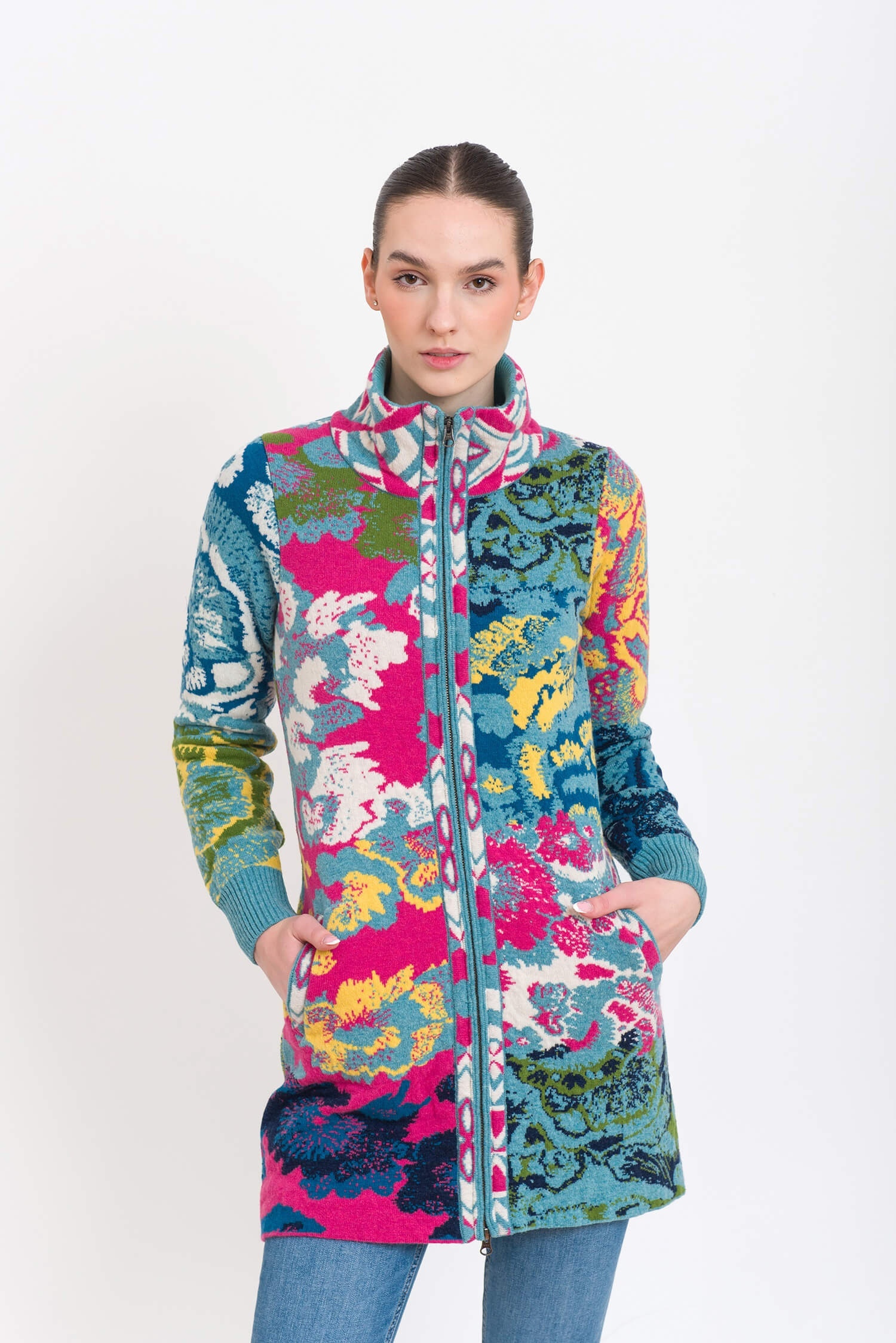 Vest jacquard lang gebreid met rits..