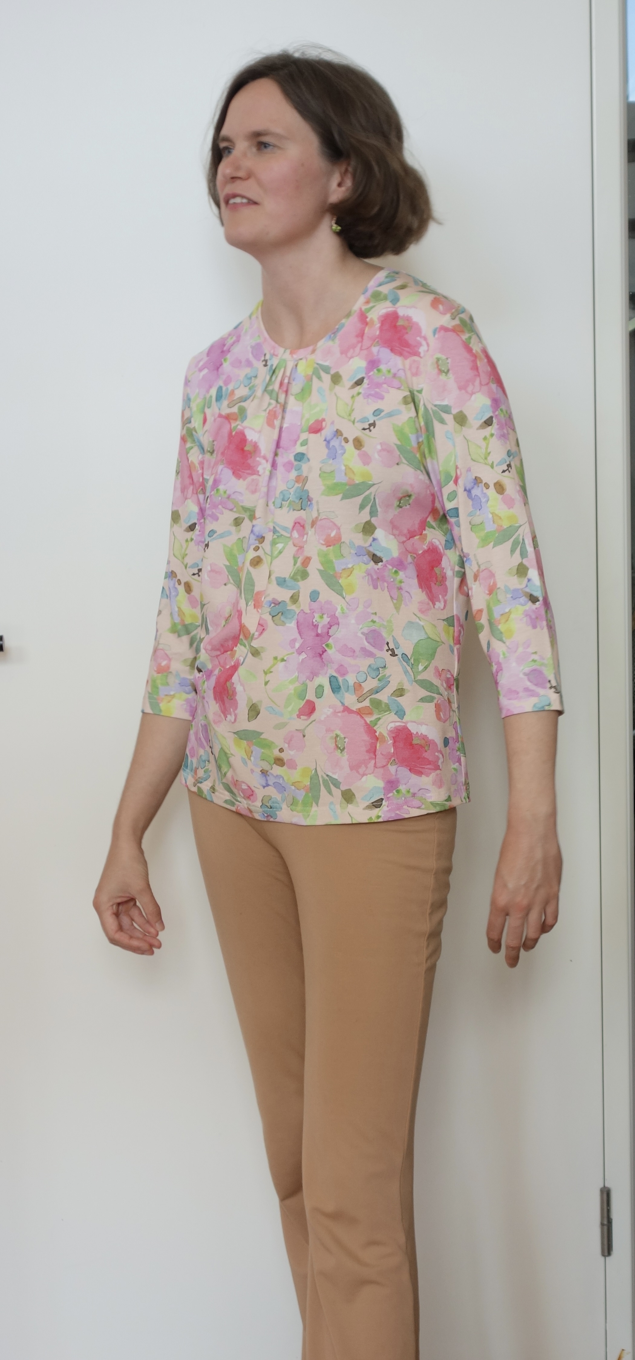 Prachtig T-shirt met ronde hals en 3/4 mouw.