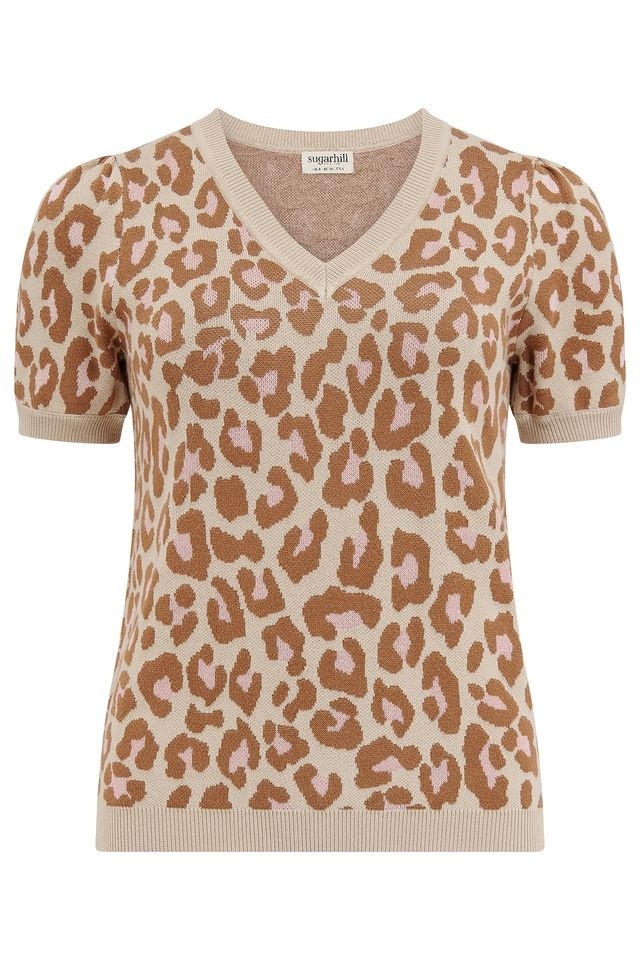 Top met V-hals hals leopard motief