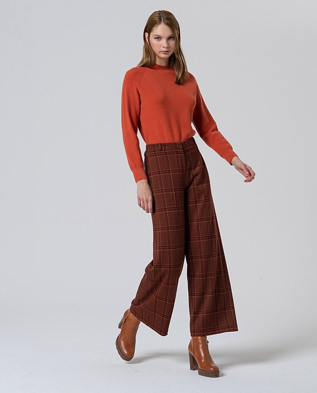 Broek geruit met elastische camel
