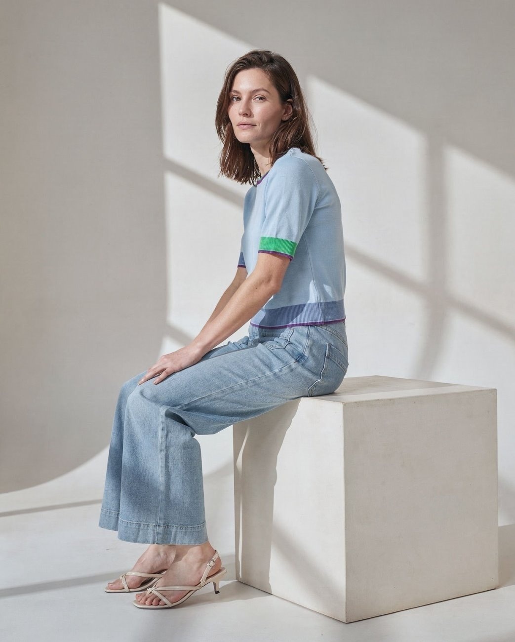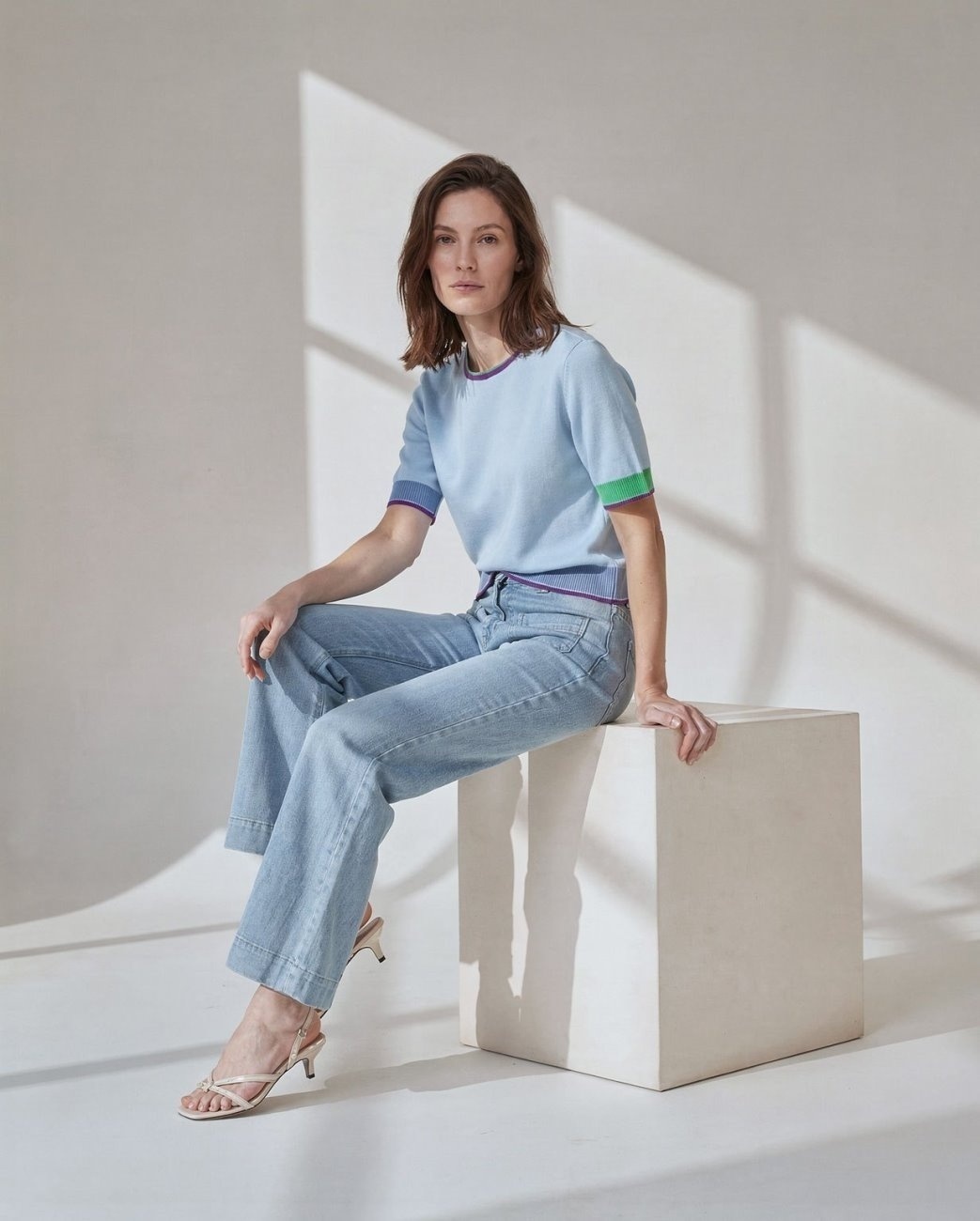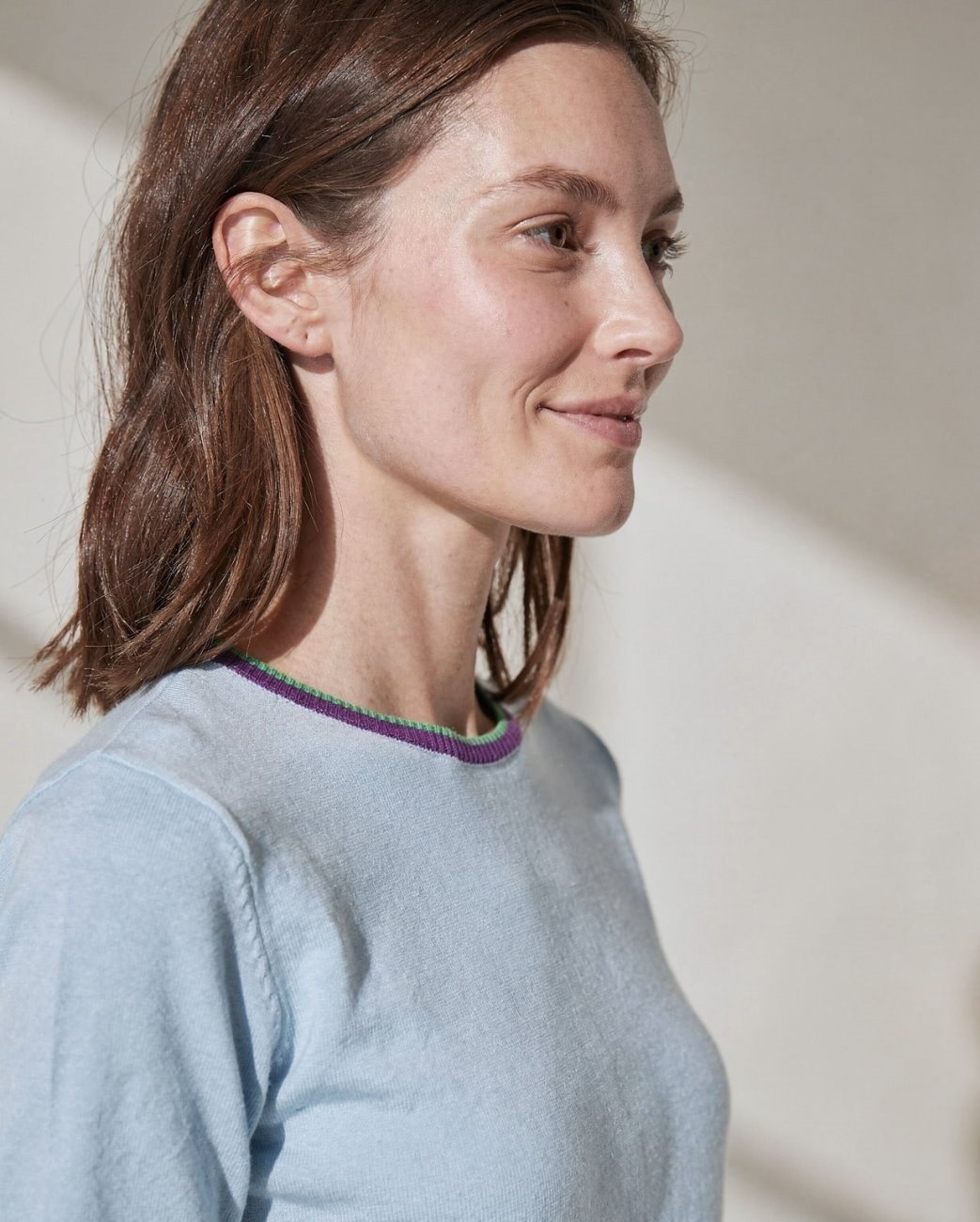 Truitje met ronde hals en gekleurde bies