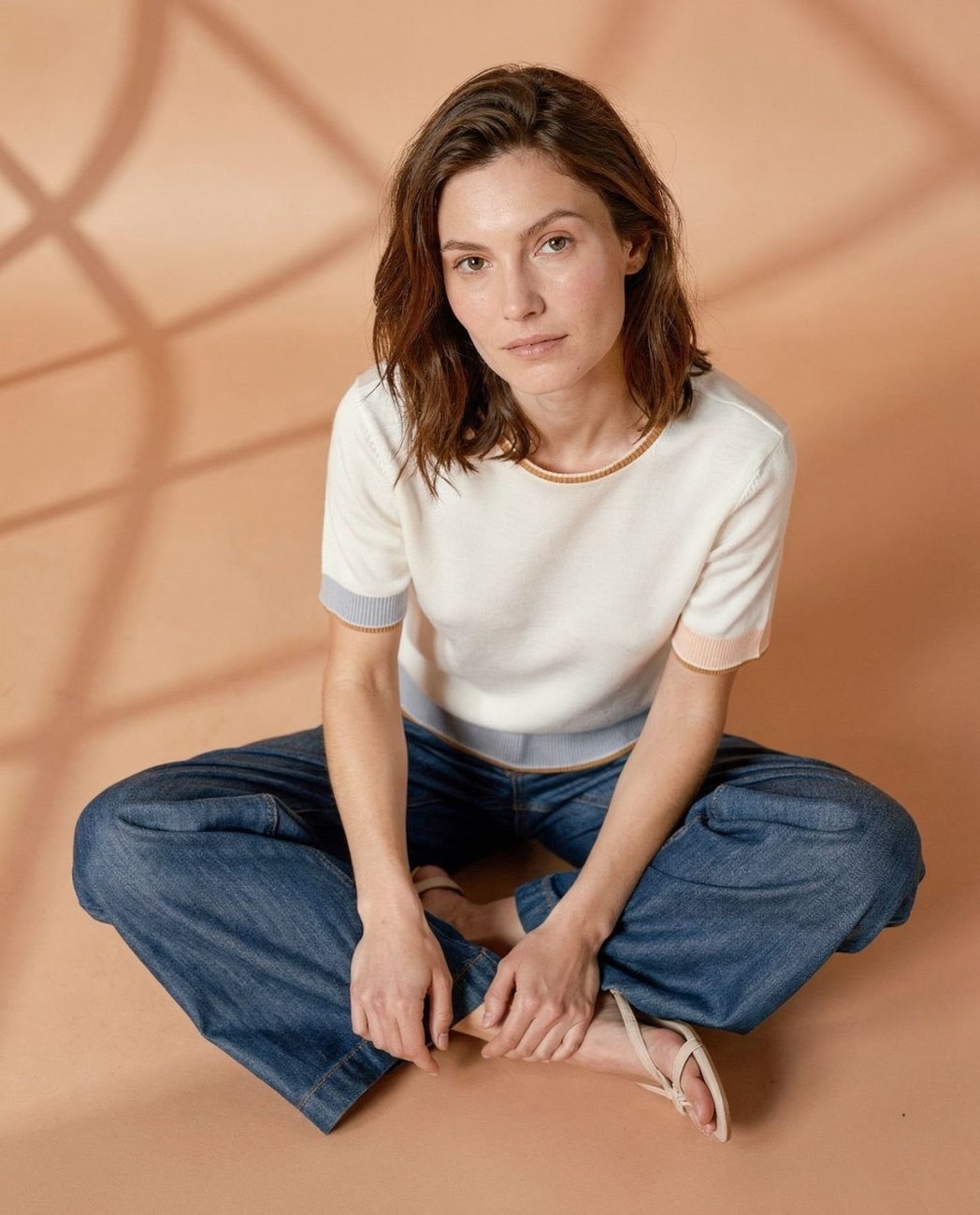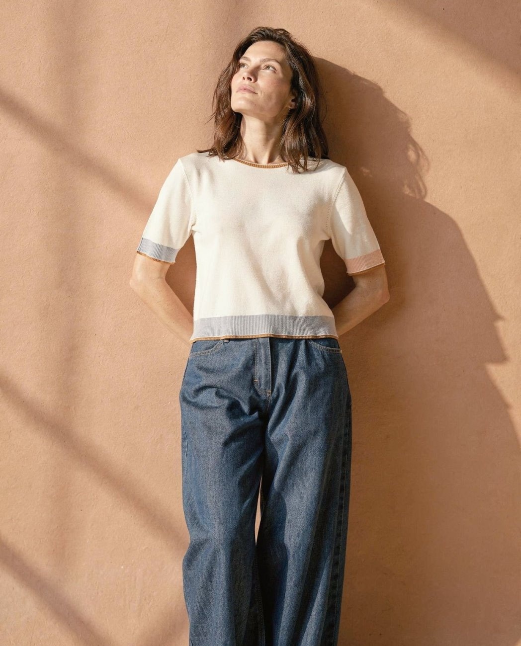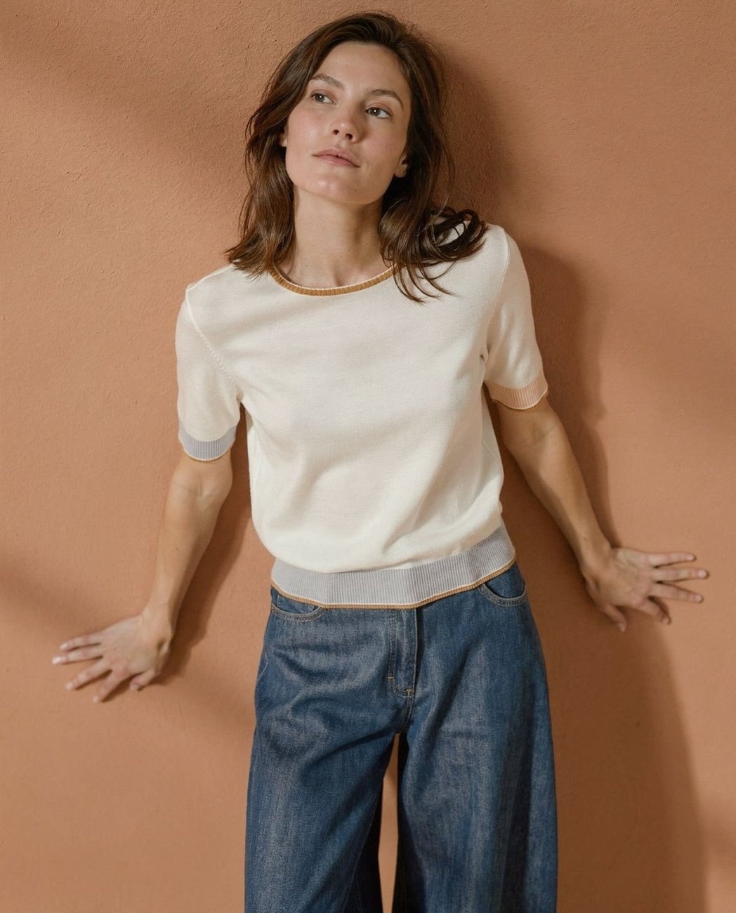 Truitje met ronde hals en gekleurde bies
