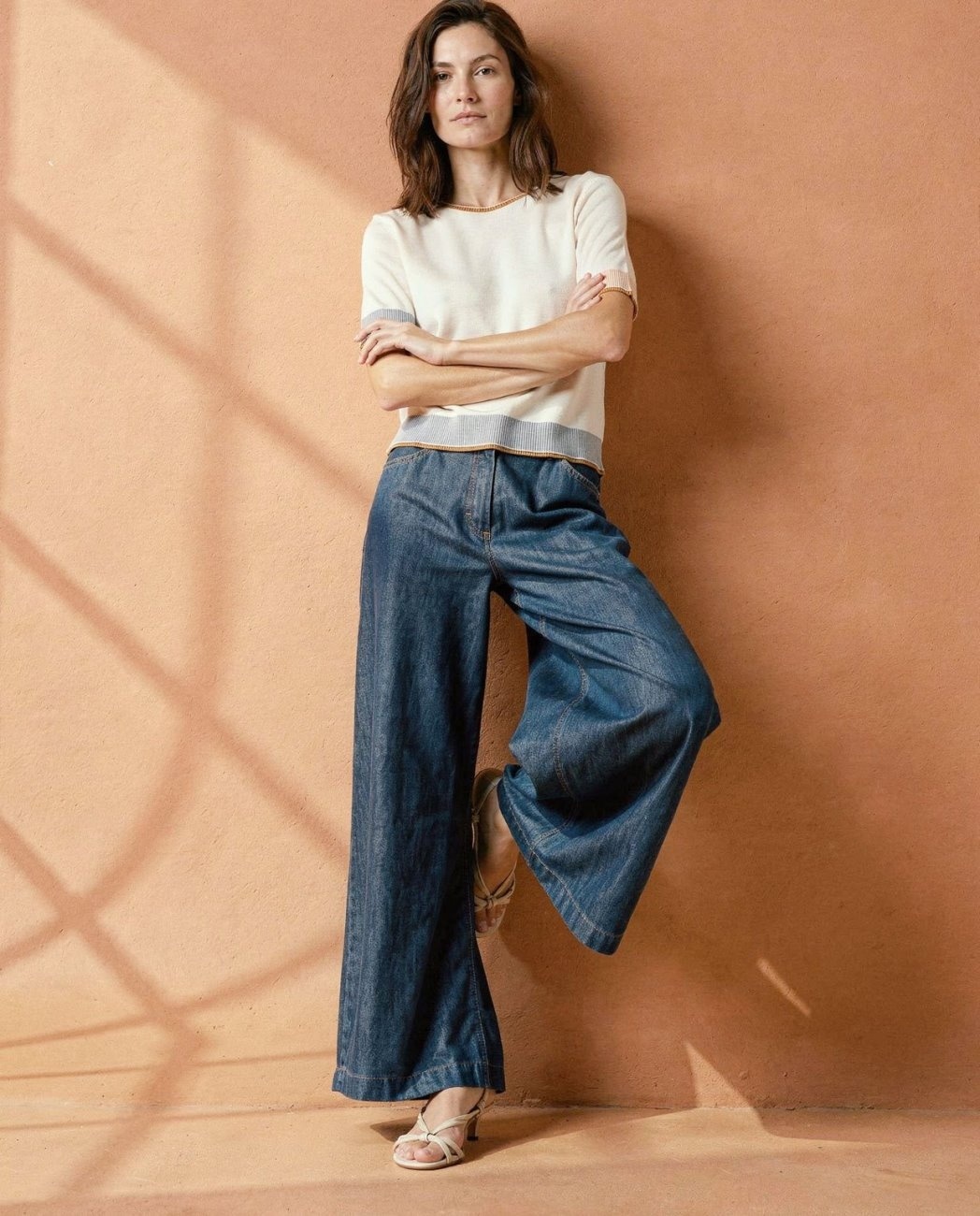 Kleur: Licht creme met gekleurde biezen aan onderkant,